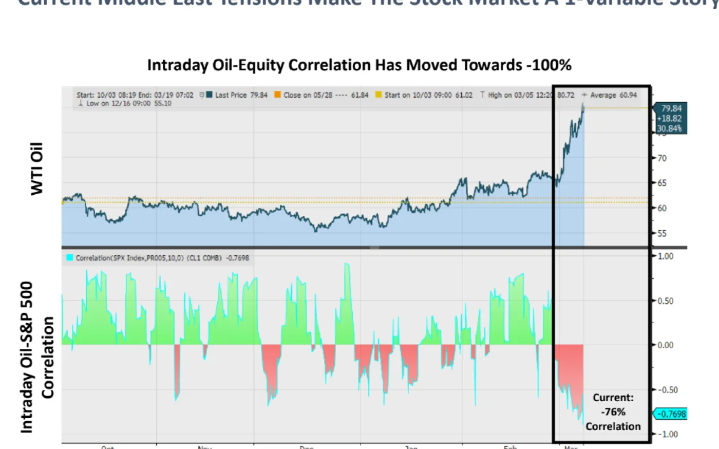 Intraday oil-equity correlation hit –76% — the market is now completely driven by crude.