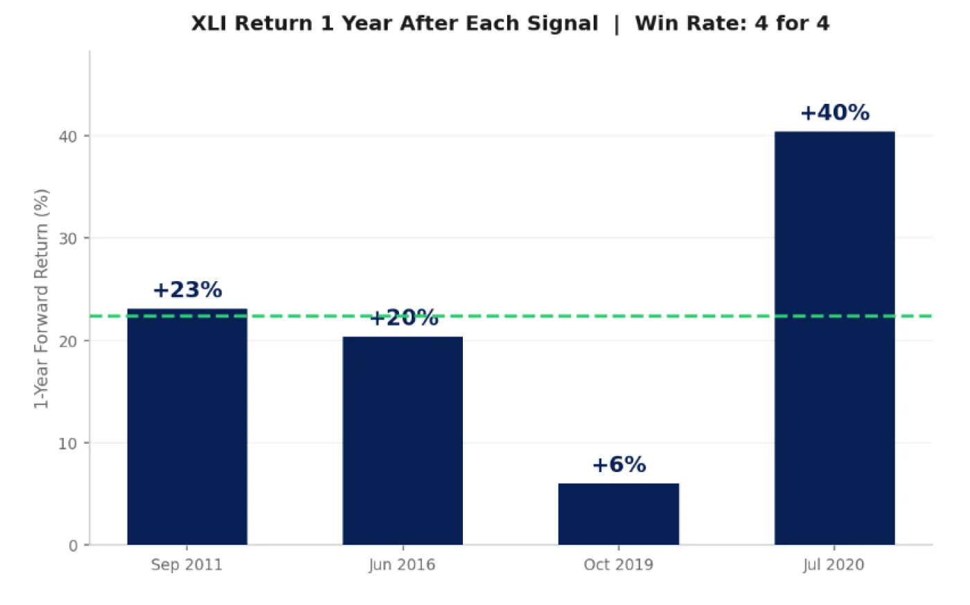 Corporate insiders in the Industrials sector are buying at the fastest pace in 15 years. What do they know? The 20-week insider accumulation indicator for XLI |