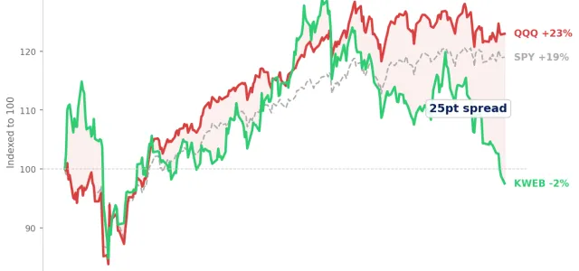 How expensive is US tech right now? The Nasdaq 100 trades at 33x earnings — near its 92nd percentile of the last decade. The broad Chinese market? Sitting near |