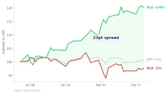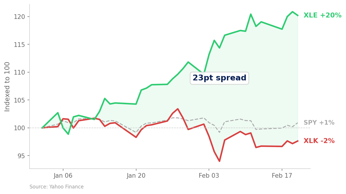Energy (XLE) vs Tech (XLK) vs S&P 500: 2026 YTD